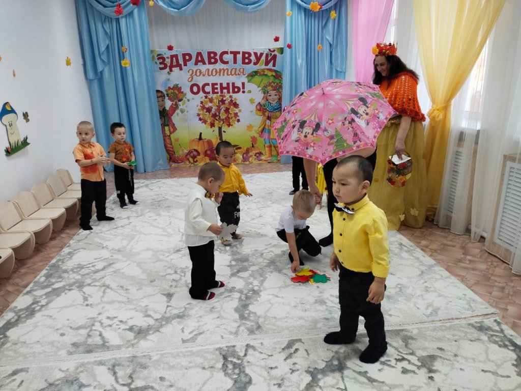 Жетекші: қараңдаршы, Балалар, бүгін біздің залда күзгі әдемі! Қанша түрлі-түсті бояулар бар! Қандай мереке бізге қонаққа келді? Әрине, күз мерекесі!