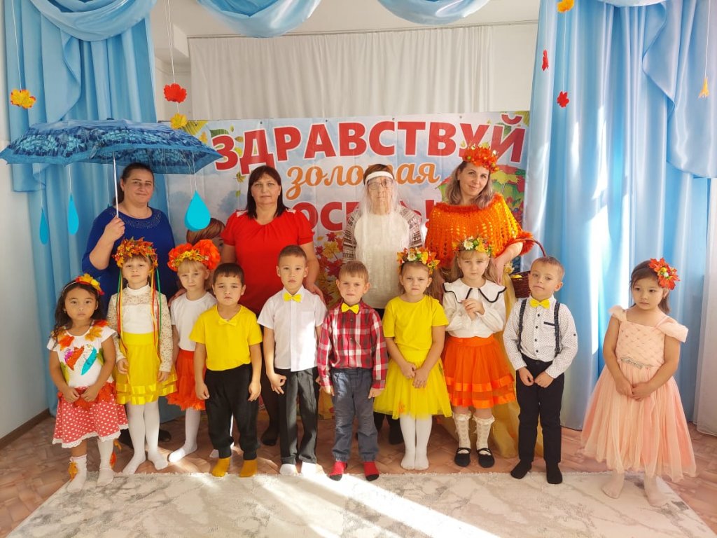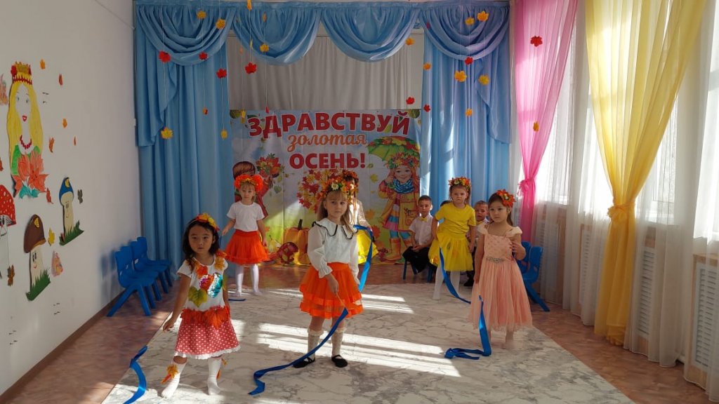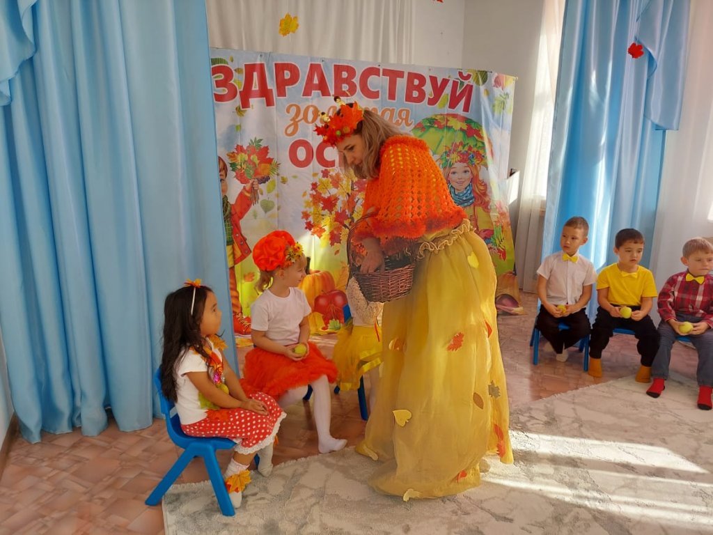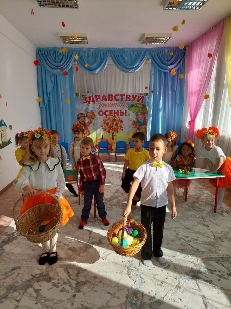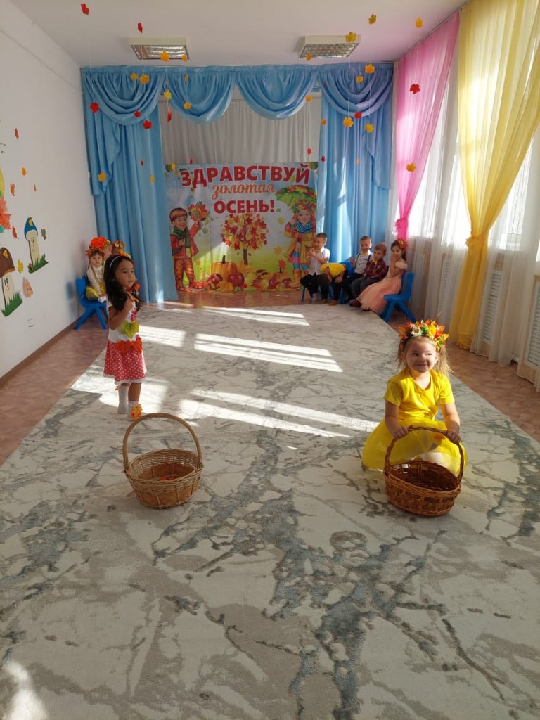 Балалар әуенмен залға кіреді (мысалы, «Күз келді» әні).